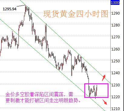 2、受阻1230美元做空,止损1234美元,目标1220美元附近。
